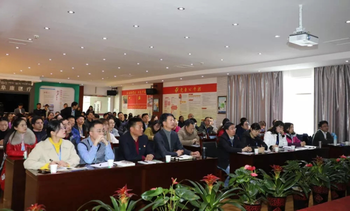 正式开讲前,文进副所长代表四川大学华西医院医院管理研究所向阜康医疗赠送了医院管理专业书籍,西藏阜康医疗股份有限公司党委书记、董事长王斌接受了馈赠。王斌随后向与会老师、同学介绍了阜康医疗的创业历程。从2005年开始,经过全体员工13年的不懈奋斗,阜康由当初只有70张床位的小医院发展成为530张床位,工作人员1057人,集医疗、教学、科研、预防、保健、康复、急救和社区卫生服务于一体的西藏民营医疗机构,在医学领域开创诸多全区之先河,为西藏的医疗事业发展、保障各族群众的身体健康作出了巨大贡献。