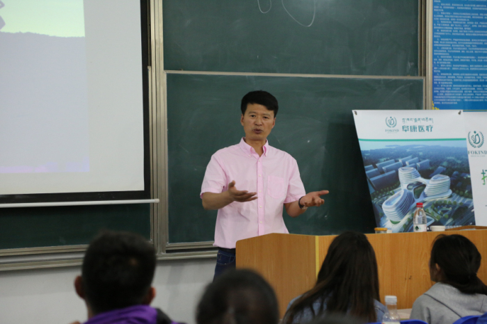 最后,王斌还为在座应届大学生介绍了阜康医疗不平凡的发展历程和优秀的企业文化,勉励青年学生学以致用,根据自身的实际情况把握好创业与就业的关系,积极投身到西藏火热的建设大潮之中,用自己的专业技能服务西藏各族群众,创造自己的无悔人生。