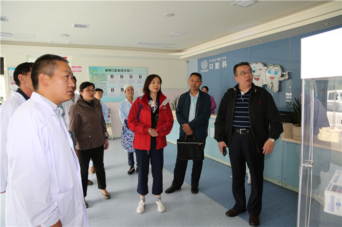 西藏阜康医院业务院长李君、欧珠罗布,院长助理多杰太、李丽及各相关科室负责人一起陪同调研。