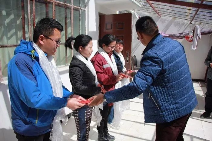 离开自己熟悉的工作环境,远赴条件艰苦的阿里地区进行包虫病筛查工作,在这欢度国庆、中秋团圆的节日里,医疗小分队成员们依然坚守在自己的岗位,以实际行动诠释着"吃苦奉献”的阜康精神。格桑拉吉技师与刘亚美护士见到久违的院领导和同事,难以掩饰对家人和同事们的思念之情,与大家紧紧相拥。党委副书记、副总经理陈彬同志与两位医务工作者进行了亲切的交谈,对大家的辛勤工作表示感谢,随后为她们献上哈达,送上慰问品与慰问金每人1000元,并祝愿大家及亲人节日快乐!