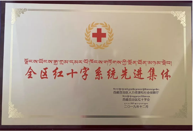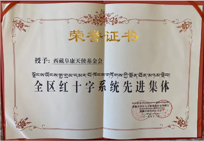 西藏阜康天使基金会荣获"全区红十字会系统先进集体”荣誉称号