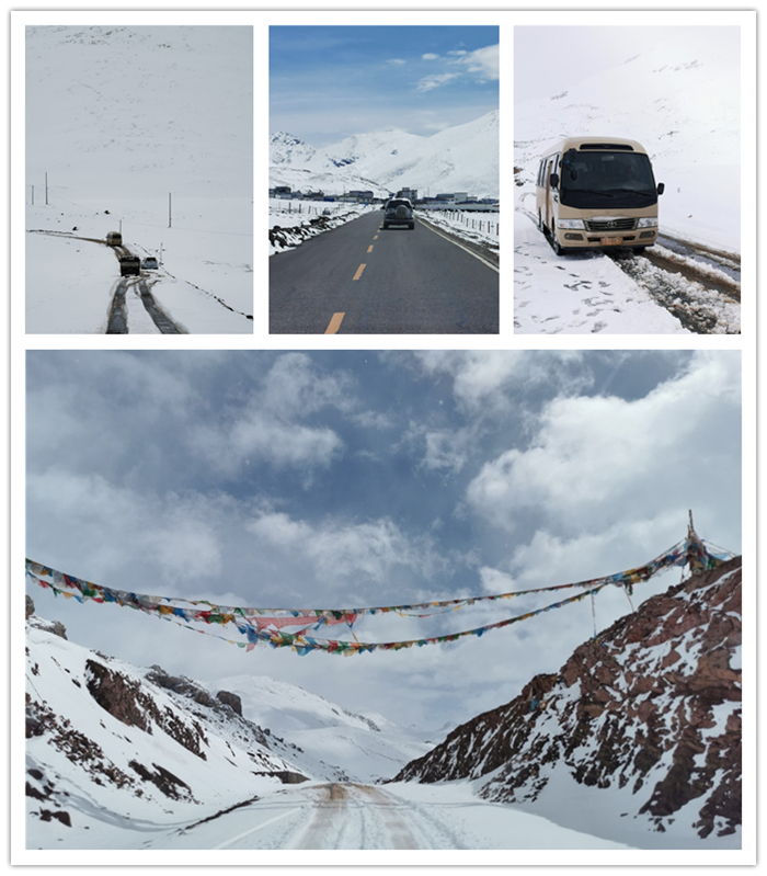 8点30分左右,义诊队伍到达当雄县境内时天气骤变,漫天的飞雪瞬时将羌塘草原披上了一件银色外衣,天地间茫茫一片,驾驶员为了保证行车安全,放慢了车速,谨慎驾驶。