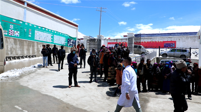嘉黎县夏玛乡乡长李智安、乡卫生院院长东知尘措带领全院医护人员和数百名当地群众早早迎候在卫生院内,为远道而来的我们献上了洁白的哈达。