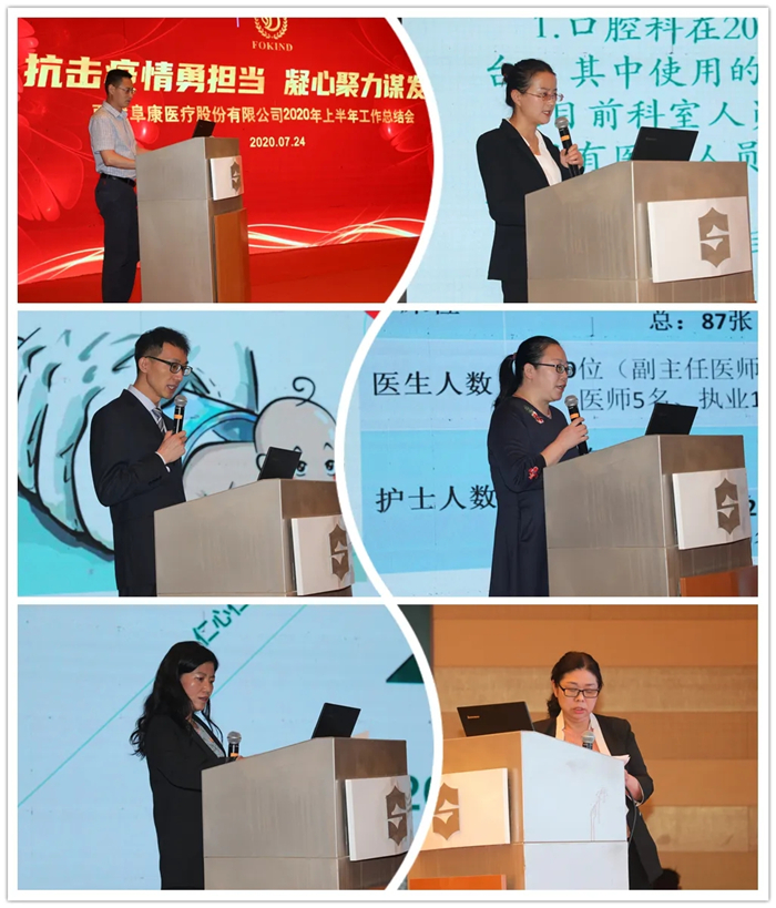 王斌董事长强调,阜康正处于最好的发展时期,今天的工作汇报大家用数据说话,情况一目了然,成绩让人信服。另外在总体形势大好的情况下也有个别院区、科室出现业绩下降的情况,下半年公司将在管理、人才方面进行针对性地调整。王斌董事长同时要求各科室要高度重视人才队伍的引进与建设培养工作,努力引进和培养学科带头人,并在此基础上打造重点专科。科主任要加强管理观念,创新新技术、新业务开展,提高服务水平,公司将视本年度经营指标完成情况出台奖励措施,以体现"团队精诚协作、患者需求至上、发展成果共享”的企业核心价值观。