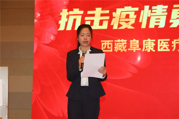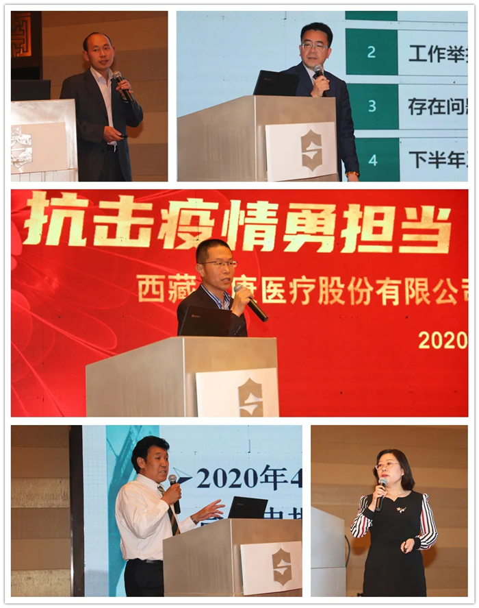 阜康医院总院长宁晓分别从"2020年医院上半年工作总结”、"2020年医院上半年经营总结”、"2020年医院下半年工作重点”等三个方面进行了总结汇报。据介绍,面对从天而降的"新冠”疫情,西藏阜康医疗股份有限公司积极承担社会责任,在各种防疫物资空前紧缺的情况下,根据王斌董事长的指示,阜康医疗积极组织各类防疫物资支持全区、乃至全国的抗疫工作,共向拉萨市卫健委、湖北仙桃市红十字会等21个单位捐赠70余万元的抗疫物资。随后,在王斌董事长的安排下,阜康医疗又向湖北省红十字会捐款100万元用于支持雷神山医院建设、向湖北省仙桃市红十字会捐赠10万元用于新冠肺炎患者救治、发动全体党员和职工捐赠120577元交由自治区红十字会用于支援全区和全国抗疫工作。同时西藏阜康医院还积极响应自治区抗疫工作领导小组以及拉萨市卫健委要求,先后派出19名医务人员进驻机场、酒店,有力支持了全区的抗疫工作。