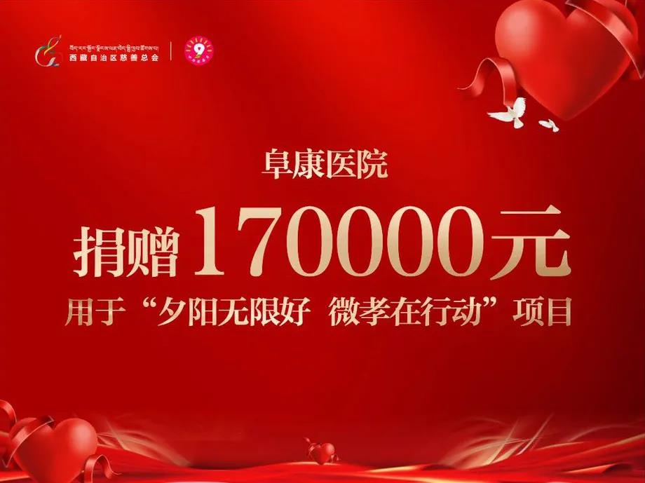 西藏阜康医疗股份有限公司针对其中"夕阳无限好 微孝在行动”——农村留守老人关爱服务项目进行了捐款,该项目总预算17万元,将为那曲地区116位留守老人提供每人价值1000元的物资援助和日间照料等服务,这将有效改善他们的生活条件、提高养老质量,增强孤寡留守老人的幸福感和安全感,让老人进一步享受到改革开放成果和社会主义的温暖。
