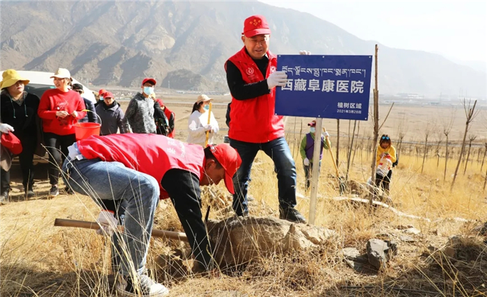 3月28日上午,为了响应拉萨市绿化委员会"积极参与义务植树,共建绿色幸福拉萨”的号召,中共西藏阜康医疗股份有限公司委员会组织员工及员工家属共78人前往堆龙德庆郊区义务植树。