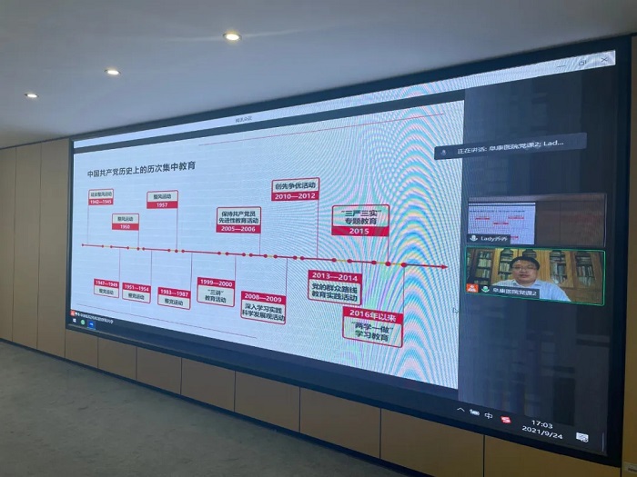 9月23日至24日,西藏阜康医疗党委在全公司范围内组织开展党的历史学习教育活动,邀请广州轻工职业技术学院马克思主义学院刘红卫教授为全体党员干部远程讲授"社会主义革命和社会主义建设”专题讲座。