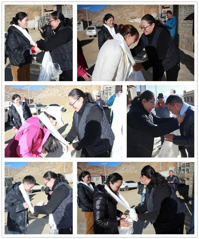 27日上午,医疗队又驱车前往嘎布村,刚下车嘎布村驻村工作队队长扎西旺姆对我们的到来表示热烈的欢迎,并为我们献上了哈达。经交流,了解到当地牧民的健康状况后,立即展开了义诊工作,义诊现场井然有序,受到当地农牧民群众交口称赞。