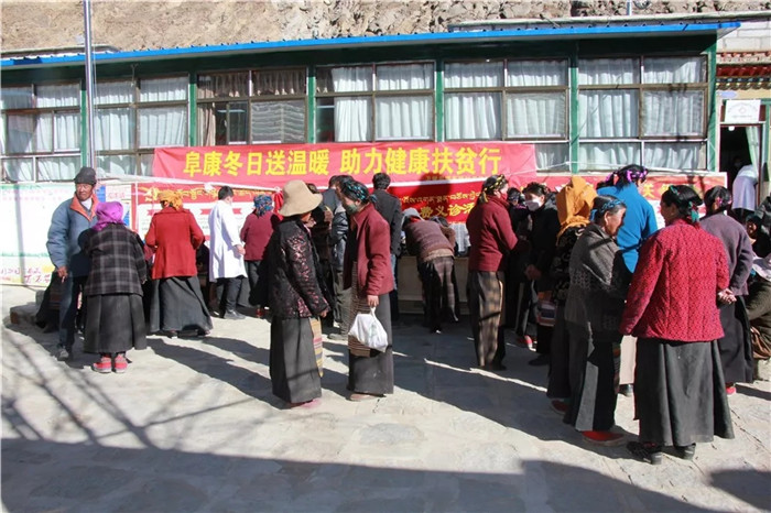 在义诊活动现场,前来寻医问诊的人络绎不绝,西藏阜康医院医疗队为牧民群众们进行了细心解答,为160余名牧民群众提供免费测量血压,为98名牧民群众进行了两癌筛查(乳腺癌和宫颈癌)并对患有高血压、关节炎、胃病等慢性病的群众开具了处方,并免费发放了价值7000余元的药品,赠送了价值6000余元的衣物。