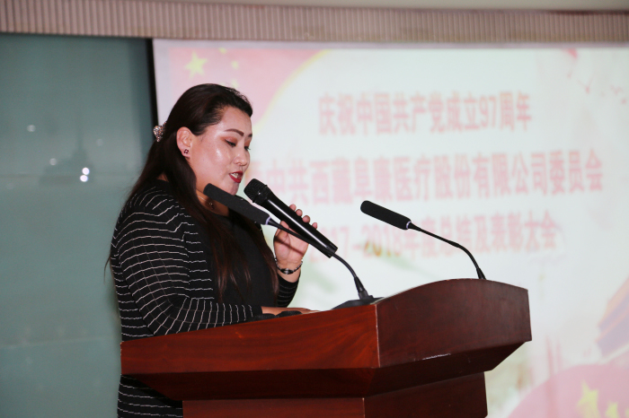 6月29日,"庆祝中国共产党成立97周年暨中共西藏阜康医疗股份有限公司委员会2017-2018年度总结及表彰大会”在阜康妇产儿童分院4楼会议室隆重召开。公司党委书记王斌,区党委组织部组织四处(两新工委办公室)负责人沈策,公司党委副书记陈彬、党委委员刘潇潇、刘连福、杨国洪及全体党员参加会议。