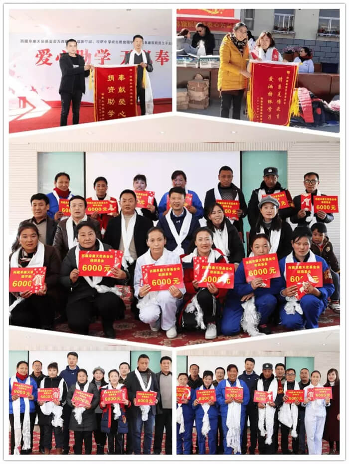2018年2月11日,西藏阜康天使基金会和西藏阜康医院党委、工会,在新春佳节来临之际慰问困难群众和员工,根据困难程度分别发放6000元、12000元、60000元不等的慰问金。同年11月,"西藏阜康天使基金会助学助医捐赠仪式”在阜康妇产儿童分院举行,在本次捐赠仪式上,西藏阜康天使基金会为西藏大学政法学院30名贫困学生,每人捐助4000元的生活补贴,总金额为120000元人民币。通过这些帮扶活动帮助了贫困员工、贫困群众和学生走出困境、重塑生活,为他们生活注入了新的希望。
