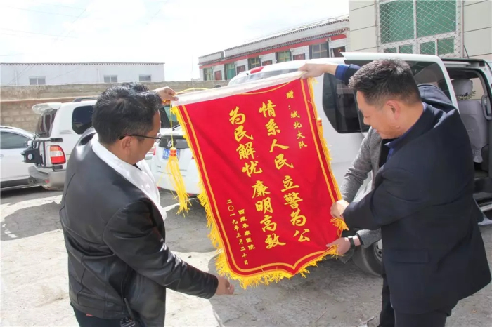 为拉萨市公安局交通警察支队城北大队送上锦旗